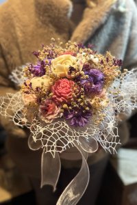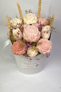 Τα κεριά μας είναι χειροποίητα από 100% φυσικό κερί ελαιοκράμβη και τα καλύτερα ποιοτικός αρωματικά έλαια. Το μπουκέτο είναι διακοσμημένο με αποξηραμένα λουλούδια.