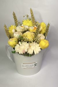 Τα κεριά μας είναι χειροποίητα από 100% φυσικό κερί ελαιοκράμβη και τα καλύτερα ποιοτικός αρωματικά έλαια. Το μπουκέτο είναι διακοσμημένο με αποξηραμένα λουλούδια.
