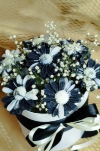 Τα κεριά μας είναι χειροποίητα από 100% φυσικό κερί ελαιοκράμβη η και τα καλύτερα ποιοτικός αρωματικά έλαια. Το μπουκέτο είναι διακοσμημένο με αποξηραμένα λουλούδια.