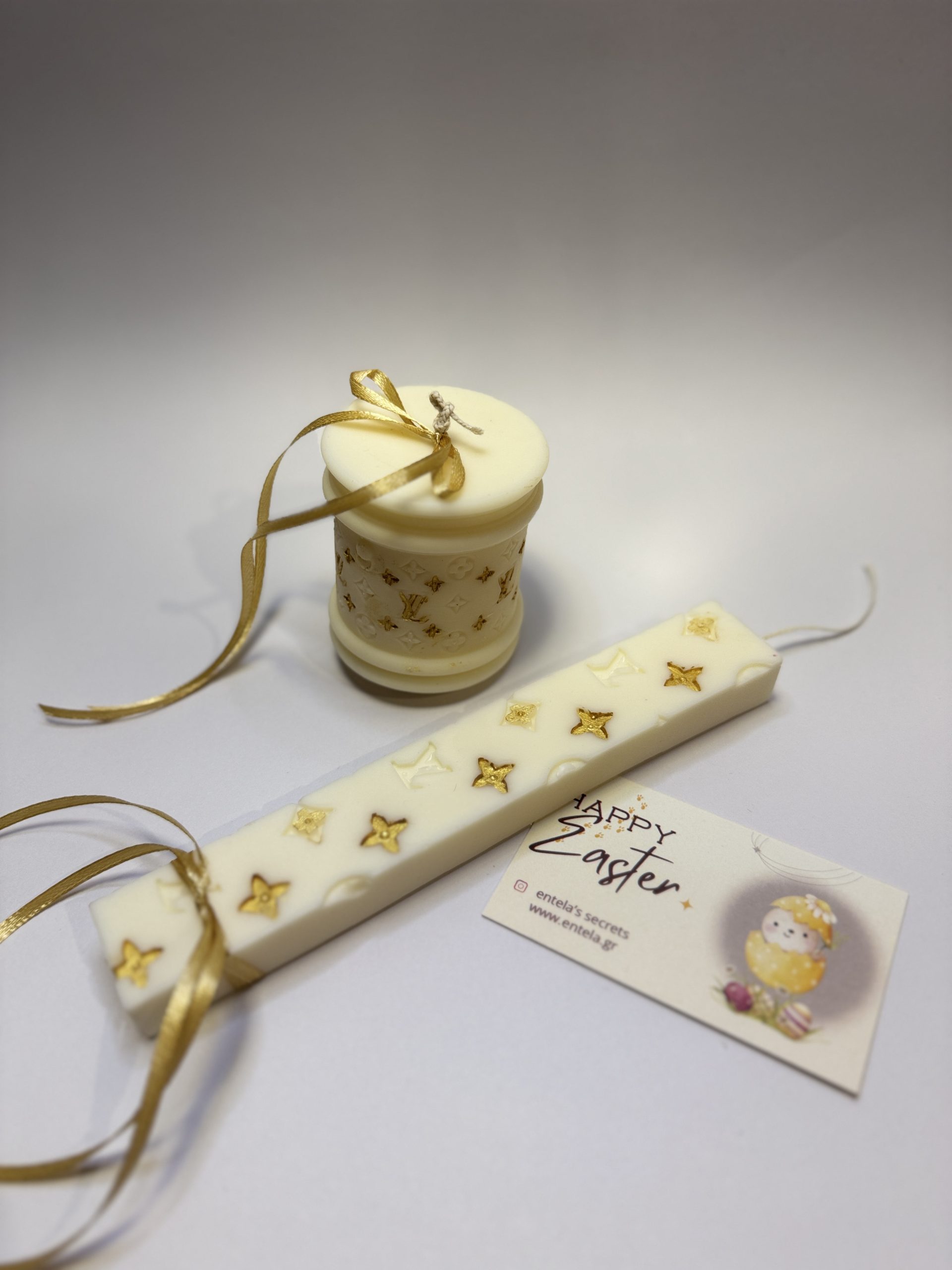 Πασχαλινο Luxury Set: Χειροποίητη Λαμπάδα & Αρωματικό Κερί “Iconic Trunk”